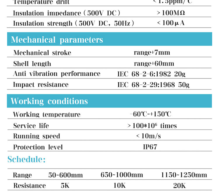 Brief introduction:The linear displacement sensor based on potentiometer principle is a linear displacement sensor with sliding rheostat structure. The sensor can supply 5V or 10V power, output 0-5V, 0-10V voltage signal, or 12-24V power supply. It is equipped with transmission module to output 0-5V, 0-10V, 4-20mA analog signal, which is convenient to connect with PLC control system for processing and calculation. The common wiring methods of displacement sensor are: two wire system, three wire system and four wire system. The displacement sensor with 4-20mA current signal can adopt two-wire wiring method. The power supply, senso...... [MORE]
